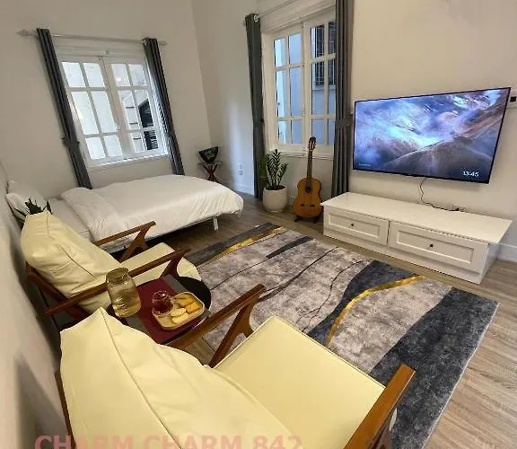 Staying at Charm Charm - Kimmy Housing - 48 To Ngoc Van apartment, guests have access to a sitting area equipped with climate control. Enhancing your comfort, a bidet, a shower, and a sink can be found at this apartment. Furthermore, the bathroom boasts hairdryers, towels, and bathrobes.